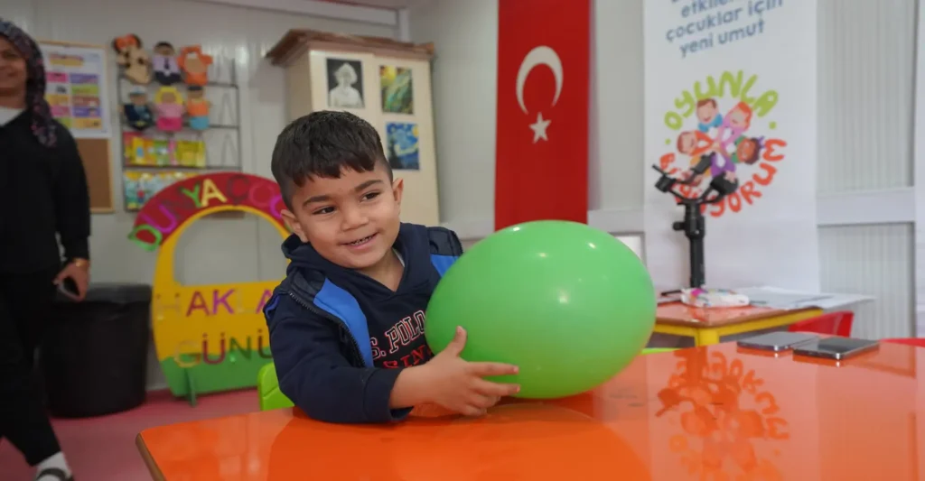 Muzaffer Akpınar Vakfı (MAV) ve Sosyal Gelişim ve Dayanışma Derneği (SGDD-ASAM) iş birliğiyle yürütülen “Oyunla Büyüyorum” projesi, çocuklara bilgiler eşliğinde oyunla gülümsemeyi, paylaşmayı ve birlikte olmanın neşesini hatırlatıyor. Bu alan, sadece bir oyun yeri değil; güvenin, dayanışmanın ve umudun yeniden can bulduğu bir buluşma noktası.