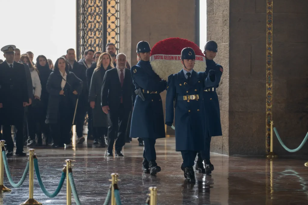 Aslanlı Yol’dan hep birlikte yürüyerek Anıtkabir avlusunda buluşan SGDD-ASAM çalışanları adına Genel Müdür İbrahim Vurgun Kavlak, Türkiye Cumhuriyeti’nin kurucusu Ulu Önder Mustafa Kemal Atatürk’ün mozolesine çelenk bıraktı ve saygı duruşunda bulundu.
